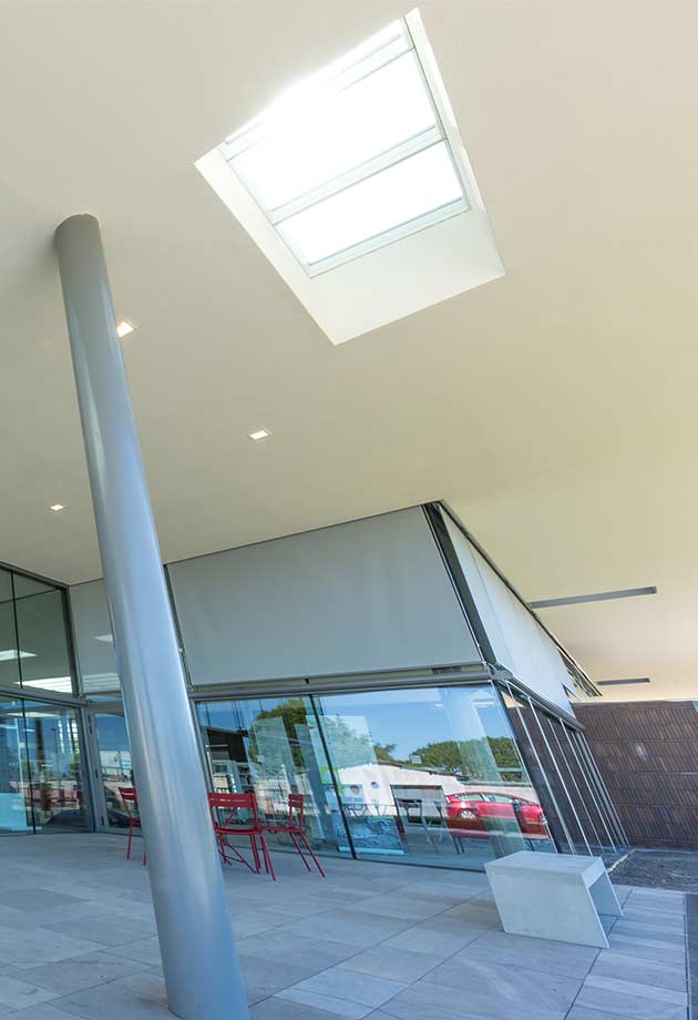 Le bâtiment est peu gourmand en énergie, grâce à un chauffage par géothermie, à un système de ventilation et à l’éclairage naturel assuré par les verrières modulaires VELUX posées sur le toit.