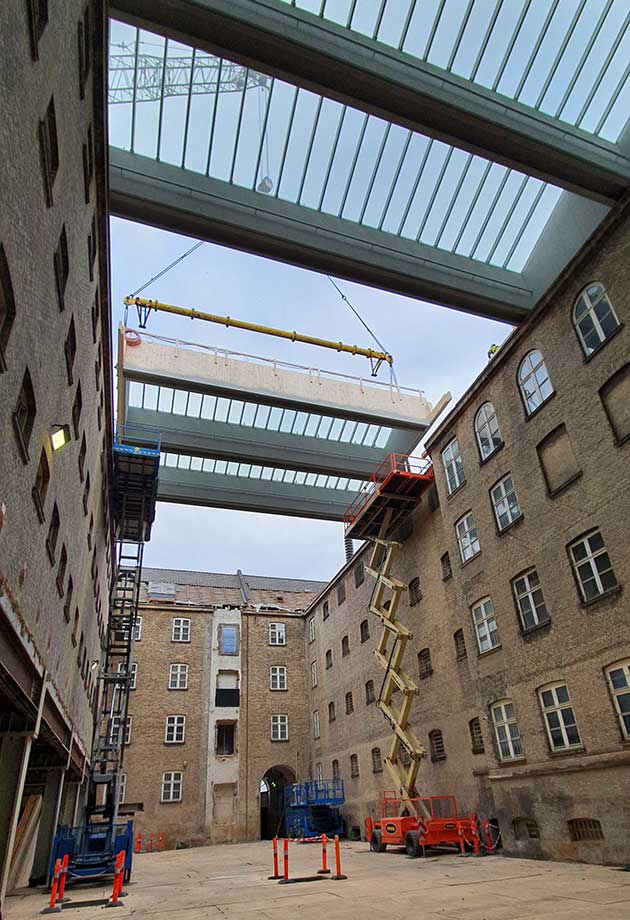 FÆNGSLET, een voormalige staatsgevangenis in Denemarken uit 1853, heeft een opmerkelijke transformatie ondergaan. Het gebouw is nieuw leven ingeblazen en omgetoverd tot een unieke locatie met een hotel, concertzaal, museum en ruimtes voor evenementen. De gerenoveerde West Hall laat de naadloze integratie zien van moderne architectuur met historisch behoud. Een belangrijk element is het glazen dak boven de binnenplaats, waar een VELUX modulair lichtstraatsysteem nu daglicht en een gevoel van openheid brengt in het hart van de voormalige gevangenis.