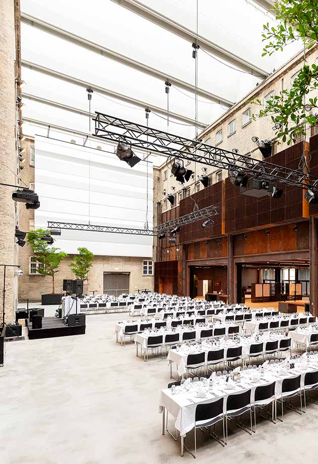 De visie voor het West Hall-project was niet om het verleden van de gevangenis uit te wissen, maar juist om het te versterken. Daarom streefden de architecten, Cubo Arkitekter, naar een eenvoudige en sobere esthetiek, een uitdaging gezien de technische complexiteit van het project. Ze veranderden de beperkende lay-out van het gebouw op meesterlijke wijze in een grote, uniforme ruimte die geschikt is voor evenementen. Twee bestaande verdiepingen werden verwijderd om een "doos" te creëren die de grote binnenplaats van de gevangenis verbindt met een aangrenzende open ruimte. Deze nieuwe ruimte, de West Hall, versmelt naadloos het interieur met het exterieur.